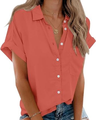 29.216女式短袖衬衫V领领纽扣羽绒衬衫上衣带口袋